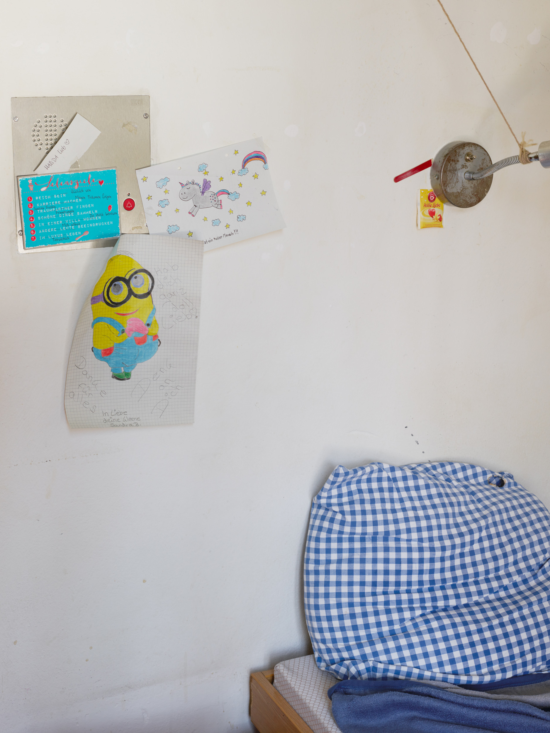 Based on the assumption that humans inscribe themselves into the world, and fashion it, through the invention and use of objects, and thus claim their place in the world, I look at things in prison cells. The cell photographs pose the question of how much room for maneuver, and how much possibility for personal development, is granted to people in prison.