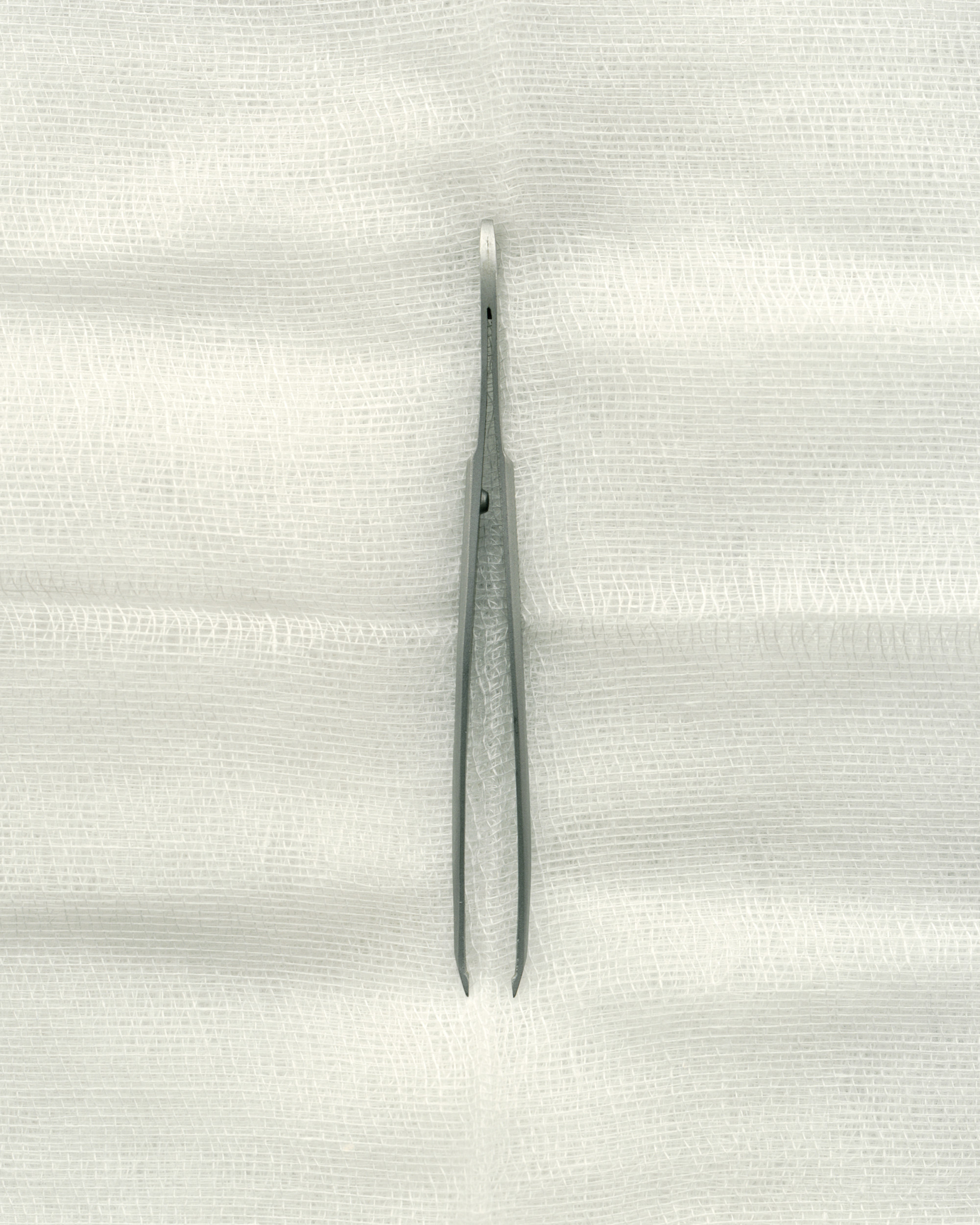 Was es jetzt noch gibt von der Großmutter, sind diese Zähne, die sie zu einer Person machten im hohen Alter, ohne die sie nicht mehr sprechen, nicht mehr grüßen konnte oder wollte. Die naturgetreue Prothese einer oberen Zahnreihe. Zahntechniker haben sie angefertigt, mit ihrem Werkzeug und ihren zu komplexem Handwerk fähigen Händen. (…) Es wurde Teil ihrer Identität. Unverzichtbar. Später, nicht mehr benötigt, hat die Prothese auf einer Marmorplatte gelegen und diese unter der Plattenkamera. Sie musste dort liegen, im diffusen Licht, als ein Kapitel der Geschichte, die Claus Goedicke erzählt.