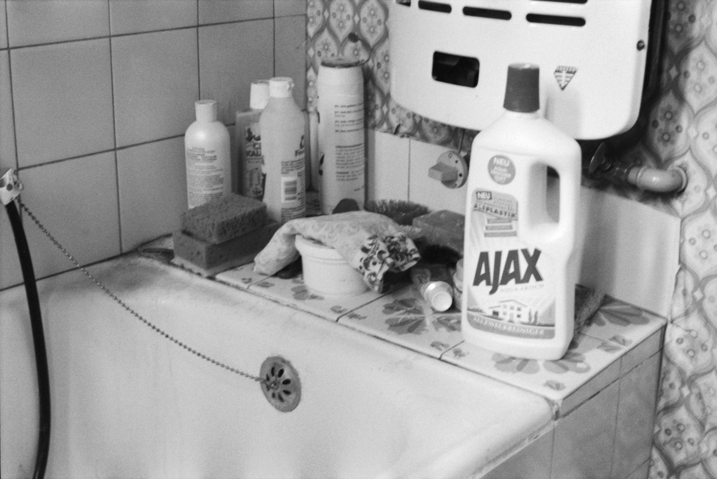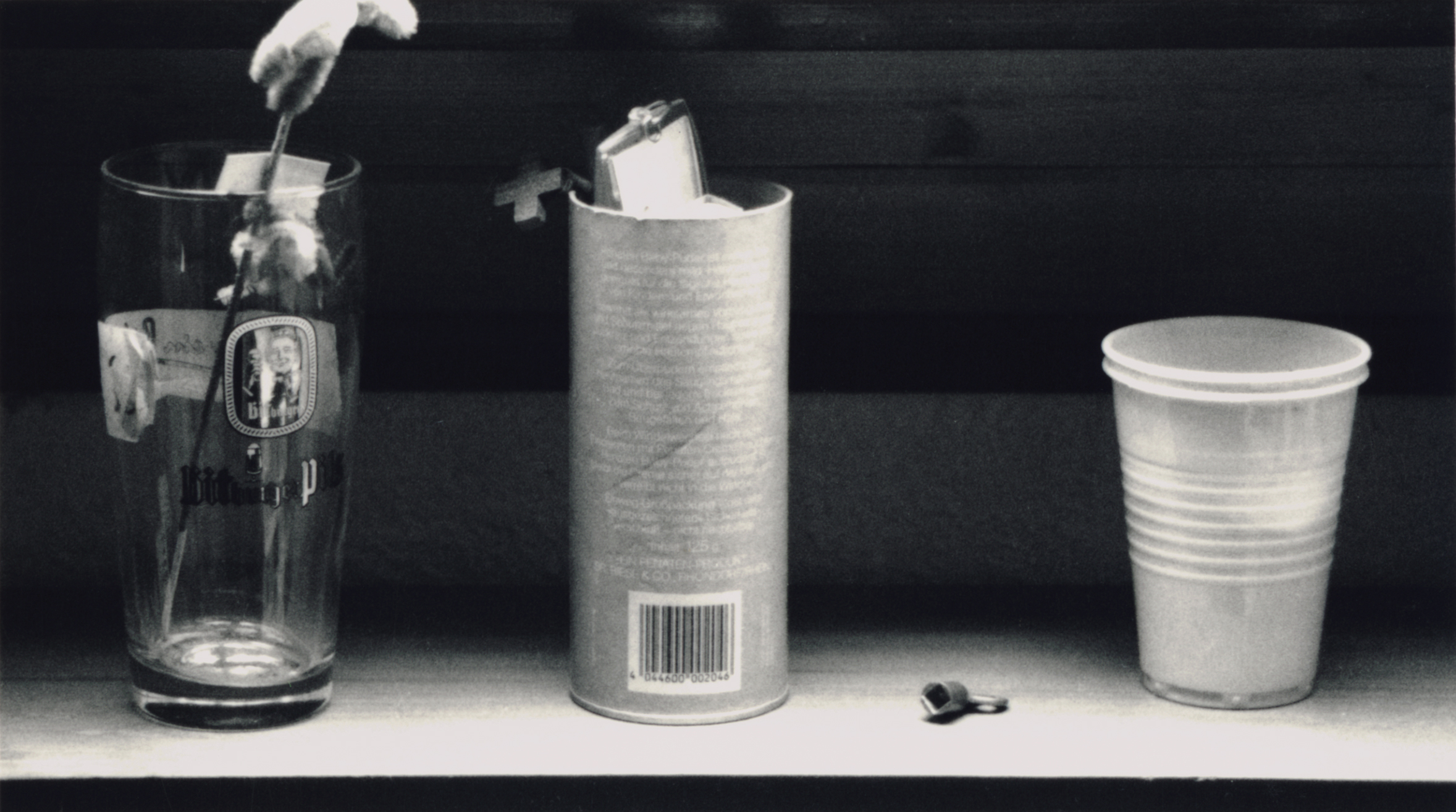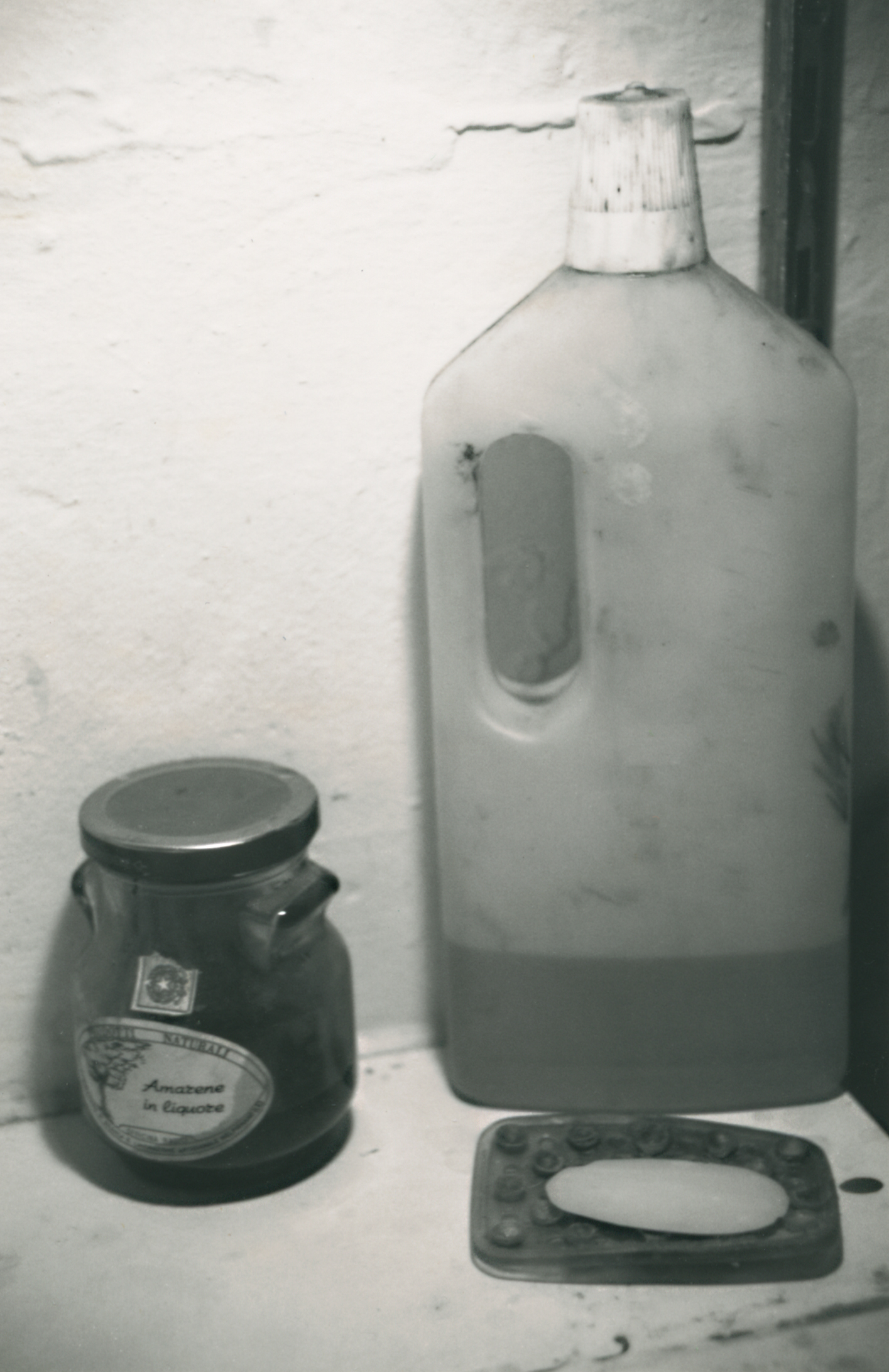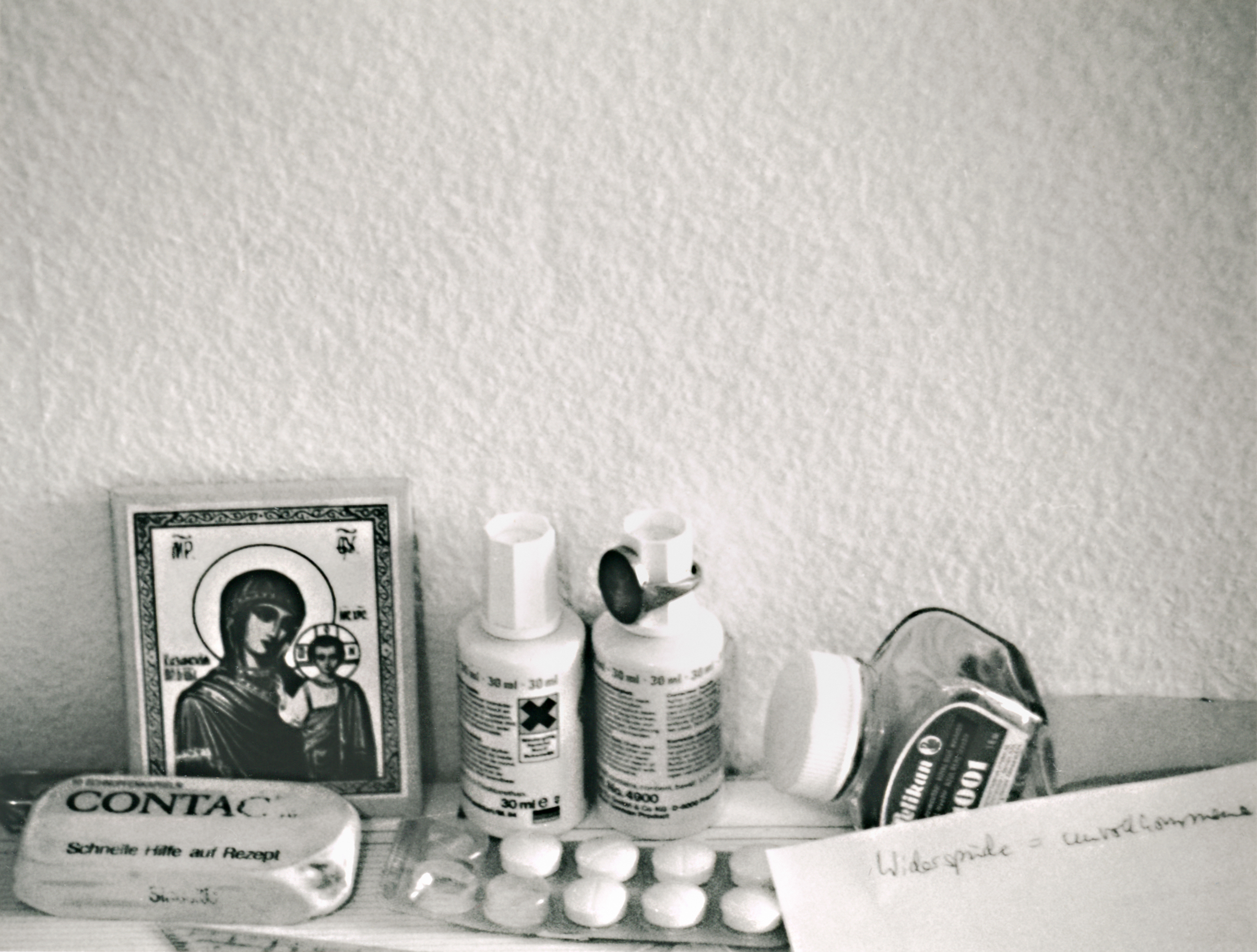 Aber auch Fundstücke dessen, was überhaupt abgelegt und hingestellt wird: Heiligenbildchen, Schmerztabletten, Kochtöpfe, Vasen, Spiegel, Biergläser, Bürsten, Waschlappen, Kosmetika, Putzmittel, Frisierumhänge, Konservengläser …